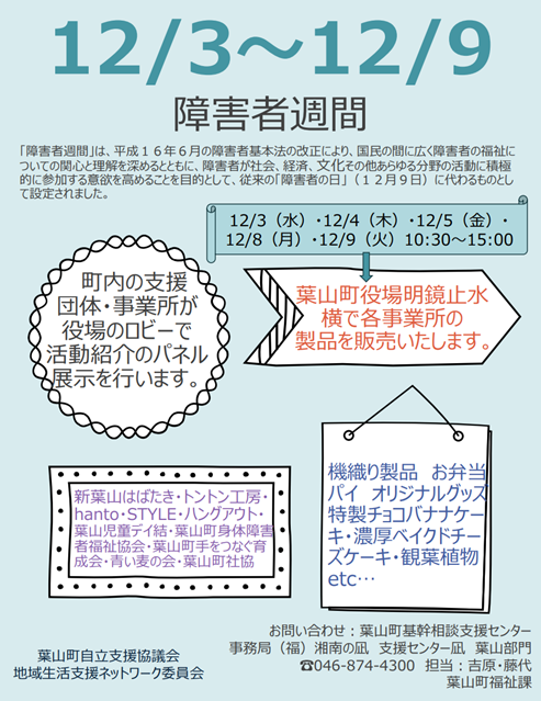 【12月3日開催】障害者週間に展示と販売を行います